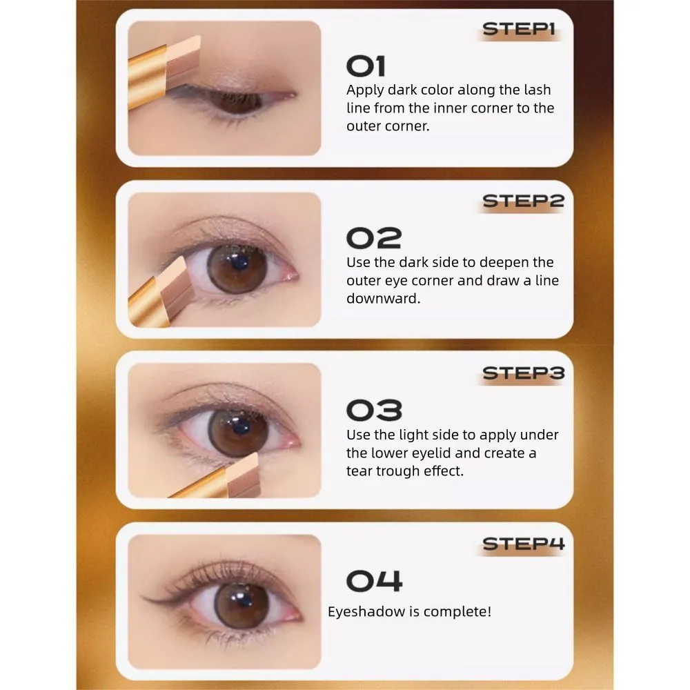 1. One-Stroke Design: The lipstick-style eyeshadow stick is user-friendly, allowing for effortless eye makeup application, perfect for quick touch-ups.